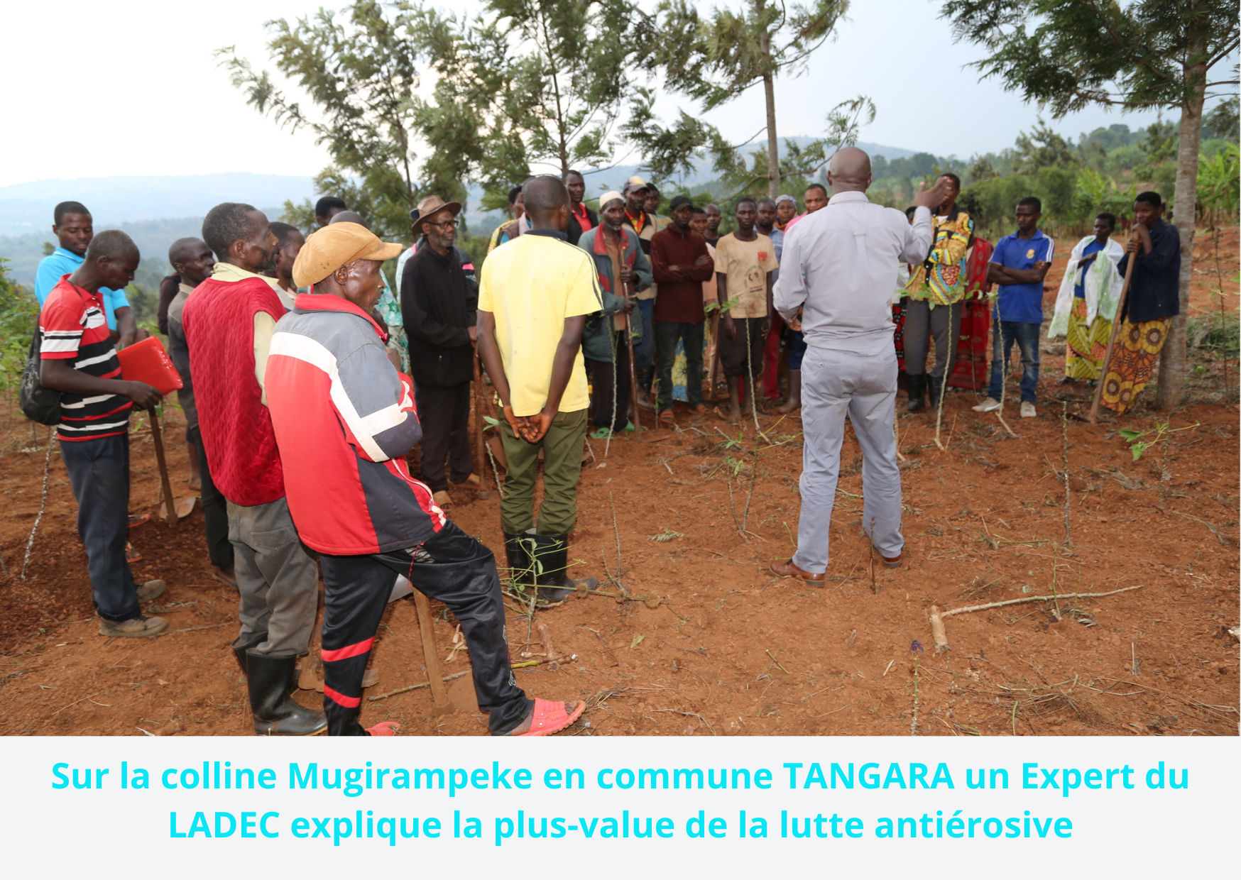 LADEC a opté pour des interventions au niveau communal. Il renforce les capacités des communes et facilite les agronomes communaux dans la mobilisation des populations collinaires. Avec cette approche, LADEC a pour objectif d’amener les autorités communales à comprendre l’enjeu et l’intérêt de la thématique : Cheminer vers une gestion améliorée et plus productive de la terre, exploiter une terre bien aménagée et dépourvue de conflits dans la communauté.